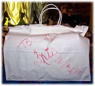 That's such a thoughtful gift from Kerryanne .... but quite clearly there's been a mix-up. Kris that's MY name with those choccies J-O-Y .... I can see that very clearly!!!! That's MY gifty!!! S'ok, just wrap it back up and send it on to me ... this happens such a lot at this time of year [tee hee] ;o).