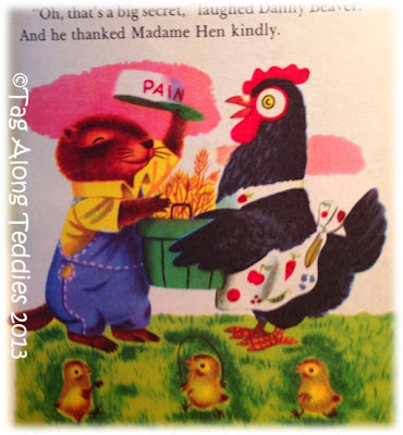 ... pretty purple flowers from Pussy Cat (I think this is where my love of violets comes from! :0) ) and assorted other items from his other friends. Then the industrious little beaver drives all his friends mad with the noise of creating his surprise ... AND ... refusing to tell them ... it wouldn't be a surprise if he told, right?! :0) But when all is revealed, they appreciate all his work ...