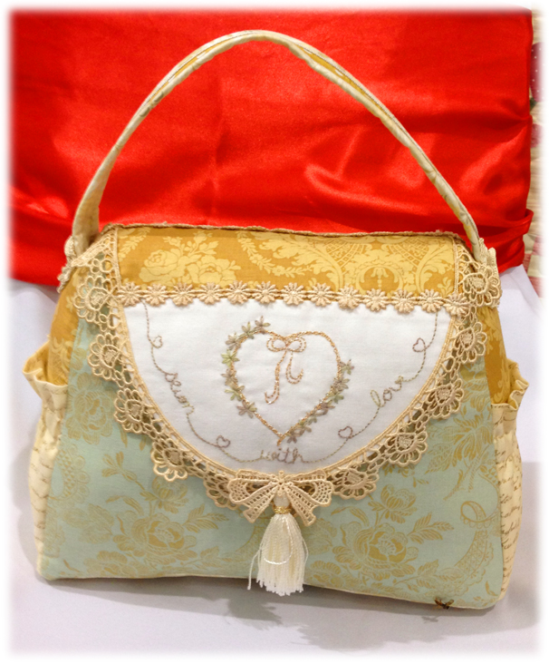 Deb's first project was this SUPER cute handbag-shaped pincushion. This was so darn cute!! It's a great size so you can't misplace it on your sewing table, has a handy pocket on each end for pencils, rotary cutters, scissors and needles, the front flap lifts to store needles and the handle makes it very handy to transport for those sewing days with friends.