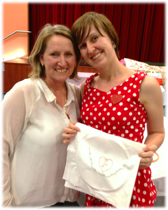 This lovely Mum travelled from north of Cairns to join her Brissie-based daughter to come and play. This was the first stitching for our dotty-dress-wearing-daughter ... and she FINISHED the stitchery for her project! WOW!! She was showing us all up! :0)