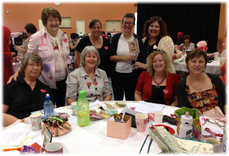 This is a photo of all the ladies ... taking photos! :0) Before the stampede began, everyone was keen to get photos of how gorgeous the room looked ... and look at those lovely giftie bags!! Oh yeah ... we were SPOILT! :0) The guest designers for this year's event were Rosalie Quinlan, Debbie McGee and Ella Madsen ...
