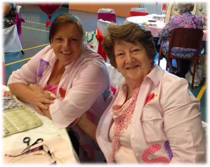 Another Mother/Daughter team ... we nick-named them the 'Overachievers'! :0) Miss Daughter on the left travels from Mt Isa each year to play with us and she ALWAYS has projects from the previous year all finished ... plus a few extras! ... to share during show and tell. I didn't get a good pic of their shirts, but they showed the swaps and changes that we had with the date for this stitching event thanks to our 'wonderful' past prime ministers.