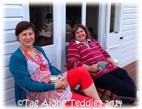 You can see that we've rather mastered the art of "Deck Sitting". Tee! Hee! Hee! Comfy chairs, cups of tea and somewhere to put your shopping-tired feet up to watch the afternoon bird brigade as they visit the duo of birdbaths in the back garden. It's been a lovely weekend of friendship. :0)